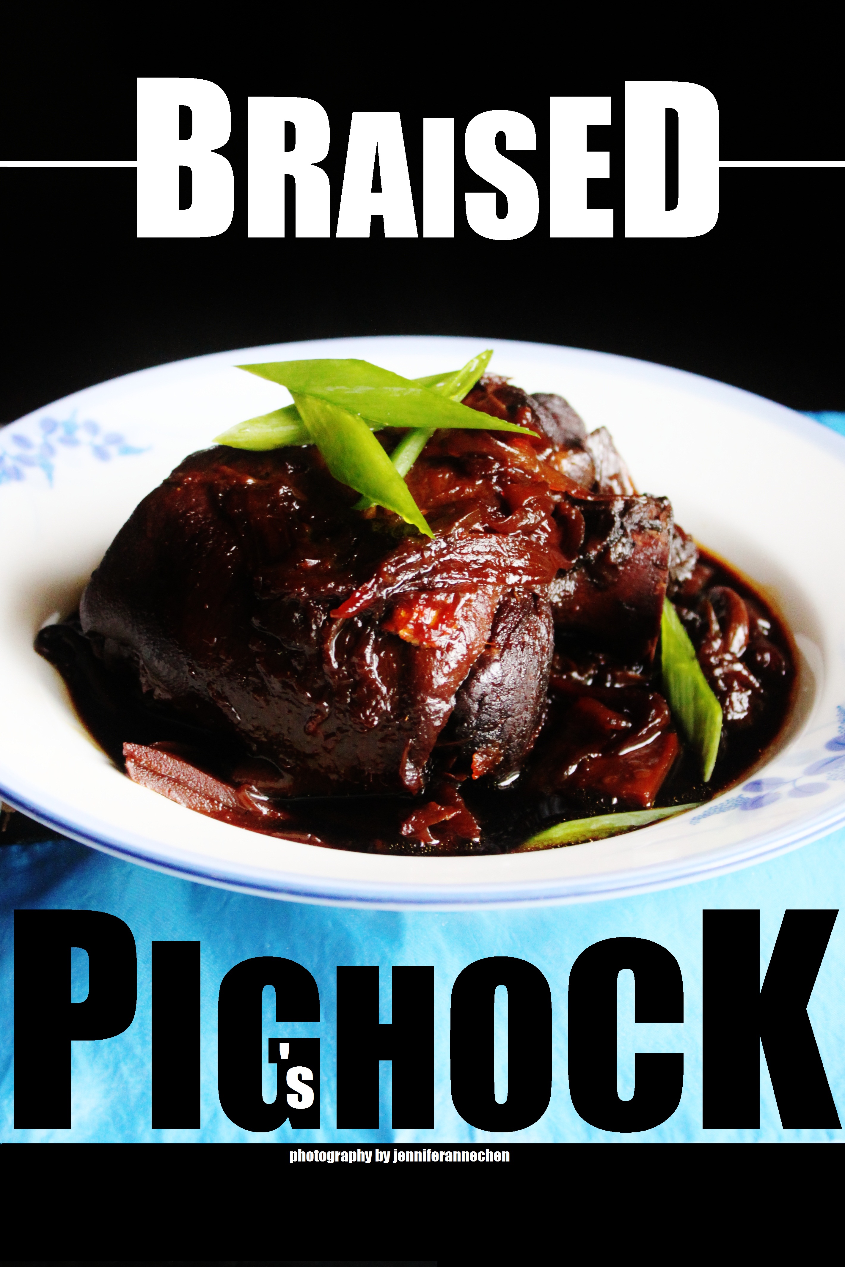It has been nearly two months since my vacation in Taiwan, and I’m just beginning to miss the grandiose Taiwanese restaurant vibe – the touch, or should I say kick, of in-your-face-I’m-damn-proud-of-what-I-made attitude. Whole braised pork hock is actually the celebration dish of all occasions in Taiwan; be it wedding banquets, office wrap-ups, over-the-hump birthdays. Why? Because its ability to bring about wholesome joy and hearty chortling far exceeds that of ham and bacon. The meat, through extended cooking would literally fall apart if there hadn’t been the sticky, tender, and golden red rind just barely holding it together. The onions become confit’d and transparent, as deep amber, and the juices of the concoction darken through patient caramelization, transforming into the most addictive sauce that will guarantee the vanishing of all the rice – regardless of how much you cook. The plan was to make this for dinner, then have the leftovers for dinner the following day. That did not happen, since my mum and I basically pigged out on the whole thing at one sitting. Oops.