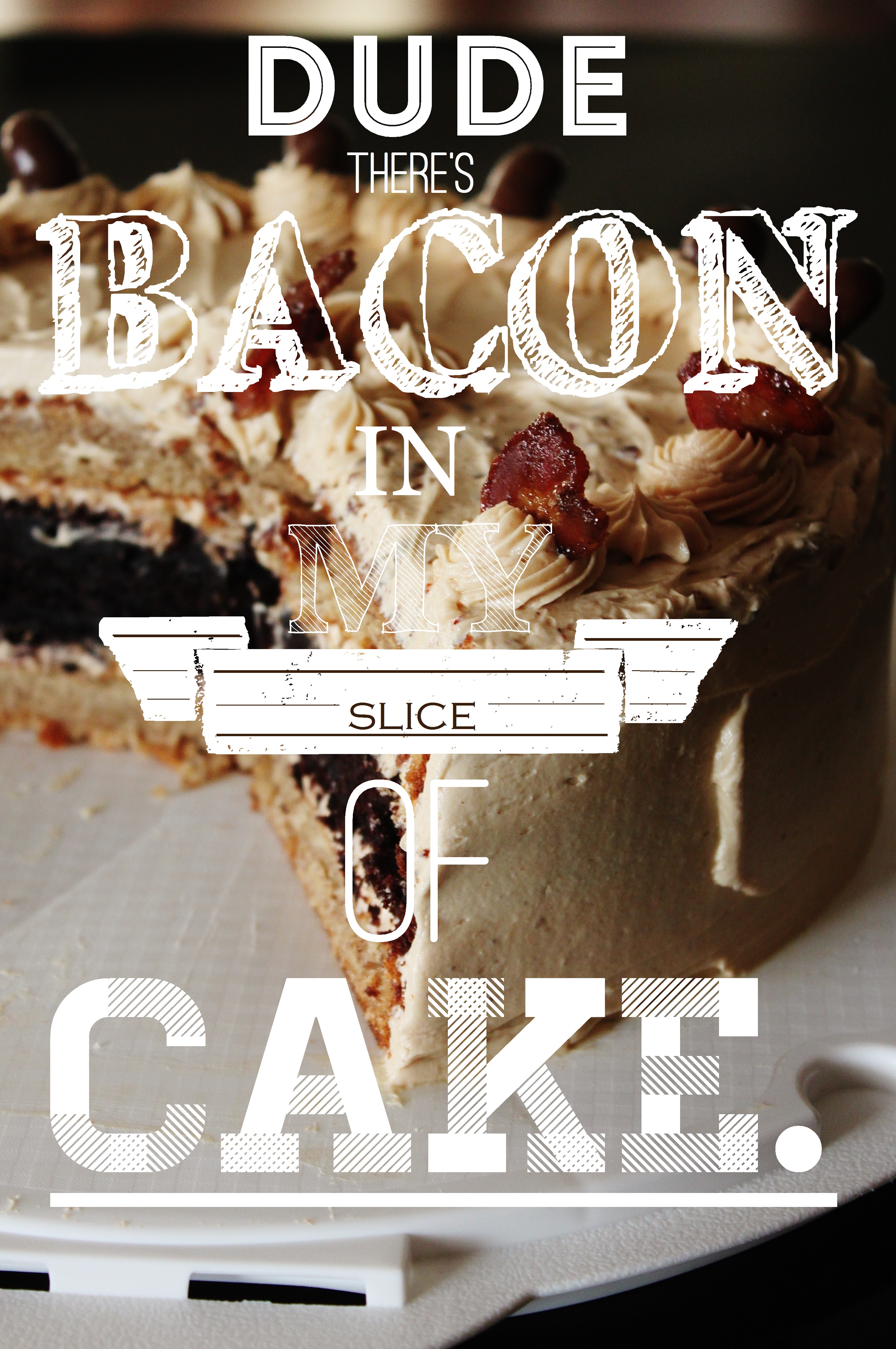 Pour the batter evenly into the prepared pans and bake for 30 to 33 minutes, or until a toothpick inserted comes out with moist crumbs attached. Cool completely and unmold the cakes by running a butter knife along the sides of the pan then inverting onto a big piece of plastic wrap. Wrap the cake snugly and refrigerate for up to a week (as you make the other components of the bacon cake) or give yourself even more chill time by freezing the cakes for up to 3 weeks. For this cake I only used one chocolate cake layer.