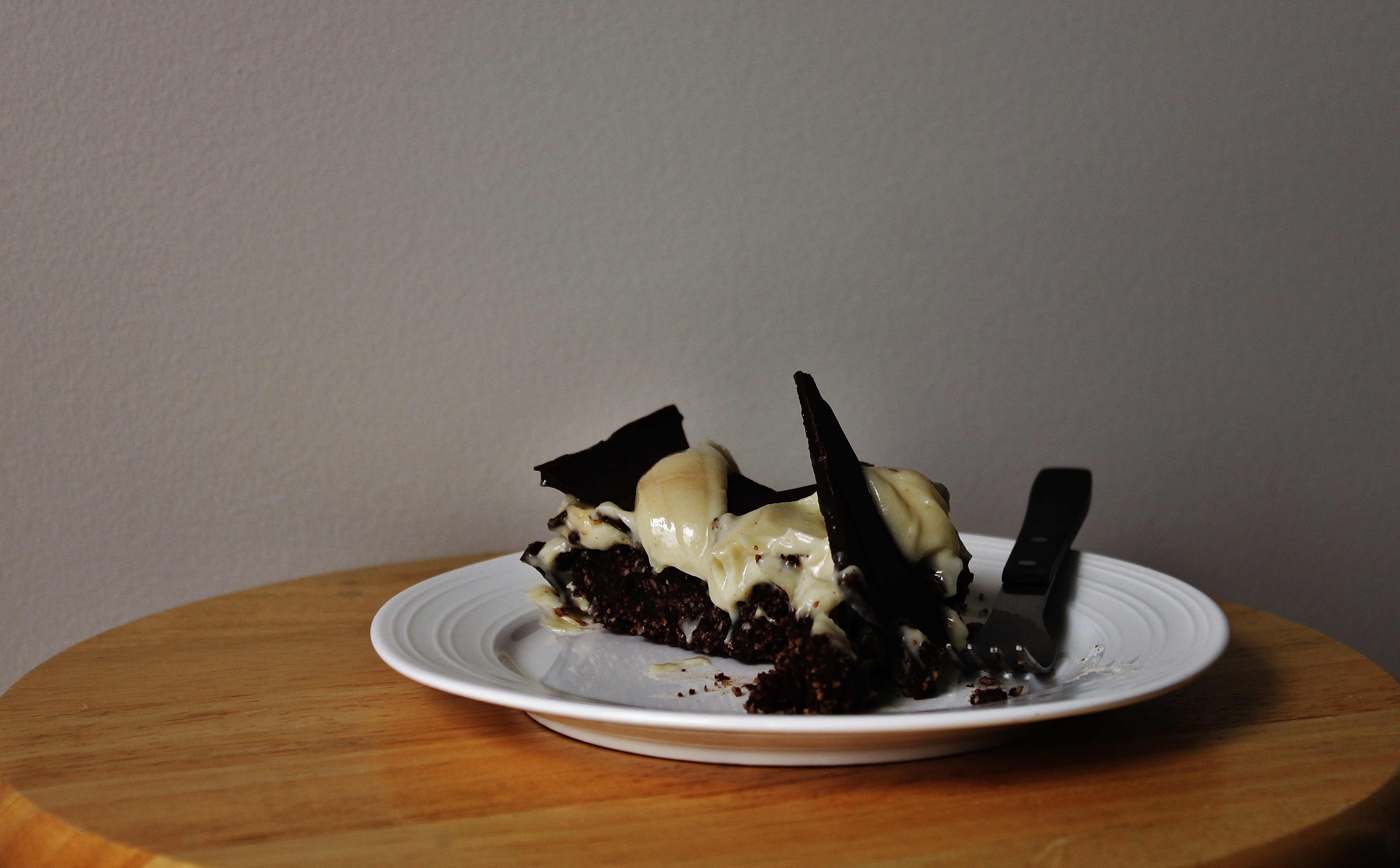 OR do as I did, and save yourself the hassle and just cut straight out of the pan. This will give you slices studded with broken chocolate shards and showcase the rich creaminess of the coconut custard. Nobody will ever guess that this glorious mess was vegan.