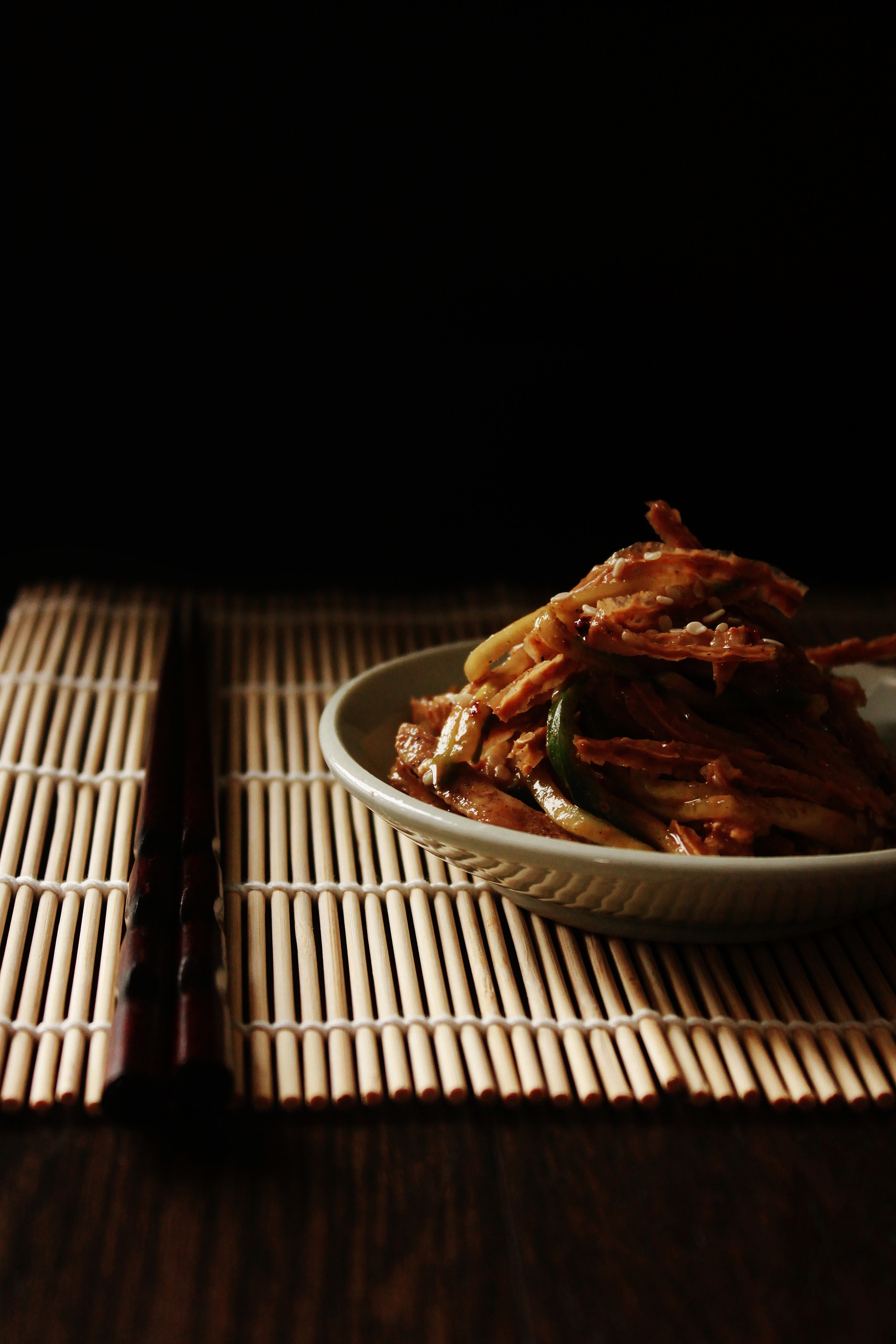 To make the slaw, soak the agar weed in water that’s hot to the touch for 10~15 minutes. Meanwhile, combine all ingredients except the sesame seeds for the dressing. Once the agar is re-hydrated, squeeze it very dry with your hands and place in a large bowl. Toss to combine with the cucumber and sesame dressing. Serve immediately or chilled (just make sure you stir it up a bit before serving), with sesame seeds sprinkled on top.